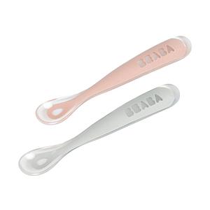 SET DE 2 CUCHARAS PRIMERAS COMIDAS SILICONA GRIS+ROSA
