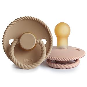 Pack 2 Chupetes FRIGG Block Latex ROPE 0-6m Croissant/Blush