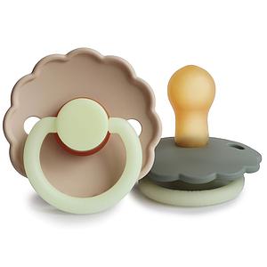 Pack 2 Chupetes FRIGG Night Latex DAISY 0m+ Cream/French Gray