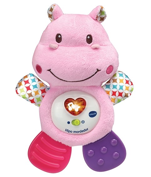 Hipo mordedor es un dulce juguete que acompañará al más pequeño en cada momento convirtiéndose en su amigo más fiel. Tiernas melodías, canciones y frases para relajar al bebé, además de dos mordedores para calmar el dolor por la salida de los primeros dientes.